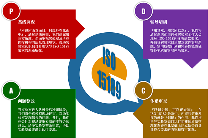 昆涞的医学实验室认可(ISO 15189)咨询计划遵循『PDCA』循环,通过阶段化的培训,使实验室逐步达到 ISO 15189 的要求,并最终建立完善的可持续改进的实验室质量管理体系,实现『破茧化蝶』的改变。